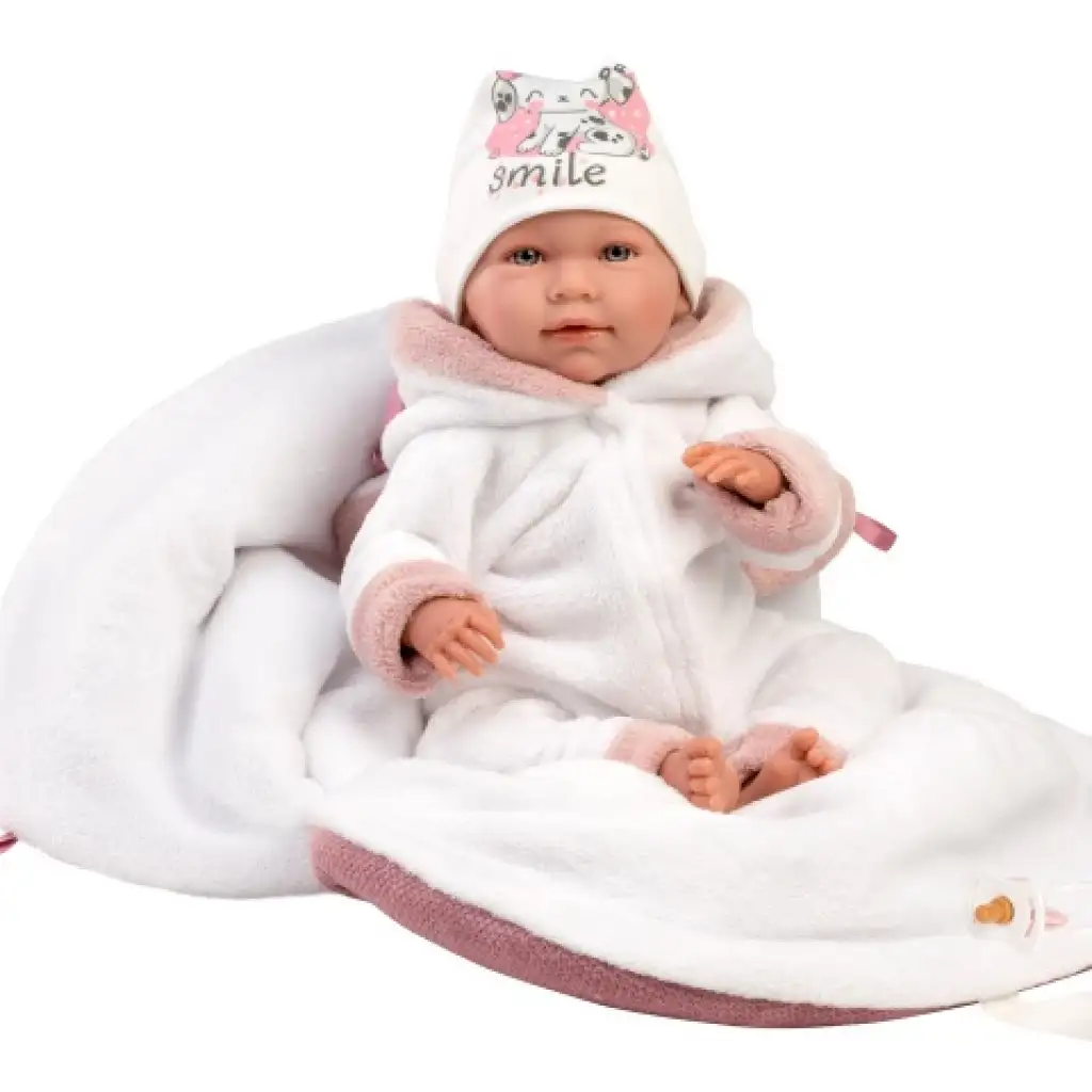 Llorens: Mimi Llorana 42cm-es síró újszülött baba hordozóval