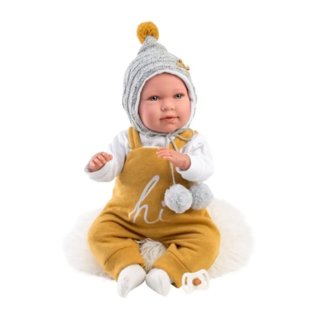 Mimi Llorana egy csodaszép baba, aki ezúttal egy cuki mustársárga ruhában érkezik, valamint egy szürke plédet és egy látványos szőrös párnát is kapott. A baba síró funkcióval van ellátva és a szettben egy cumi is található. A Llorens babák mindegyike kézzel készül Spanyolországban és kimagasló minőséget képvisel. A funkcióval ellátott baba teste puha szövetből van, mely a hangdobozt rejti, míg végtagjai és feje puha műanyagból készülnek a lehető legnagyobb élethűséggel. A Llorens babák kezei és lábai mozgathatóak, hogy ülő vagy fekvő pozícióba is lehessen őket helyezni. A baba egy csoda szép díszdobozban van és azzal együtt szállítjuk.