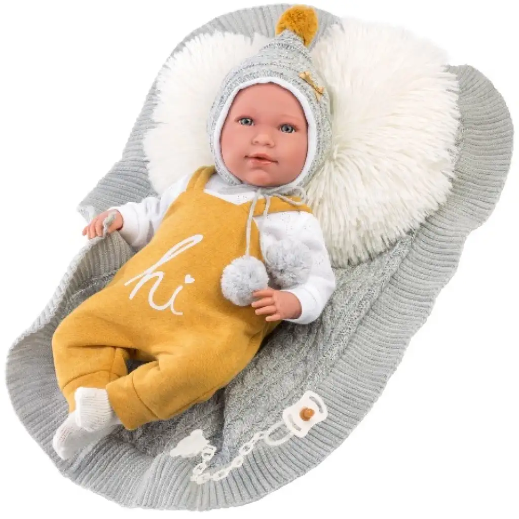 Llorens: Mimi Llorana 42cm-es síró újszülött baba pléddel és szőrös párnával