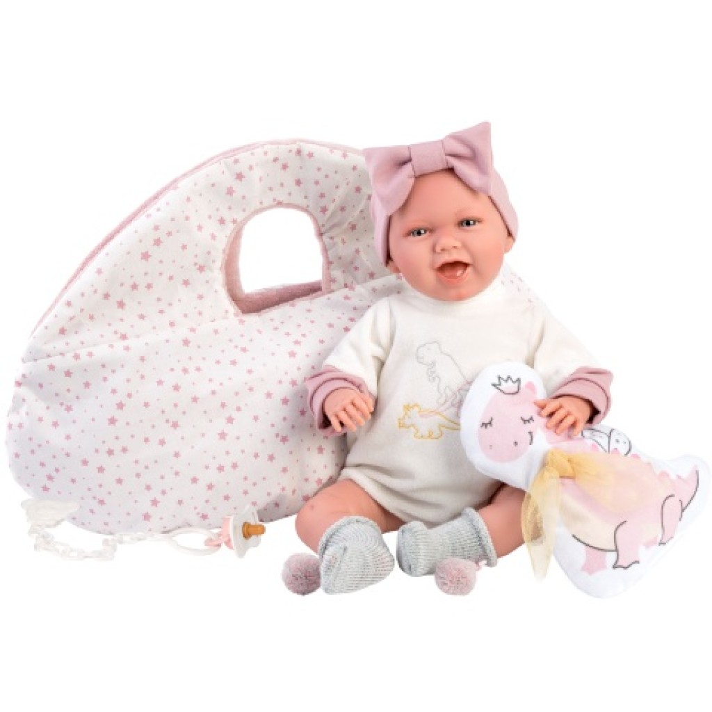 Llorens: Mimi Sonrisas 42cm-es kacagó újszülött baba hordozóval