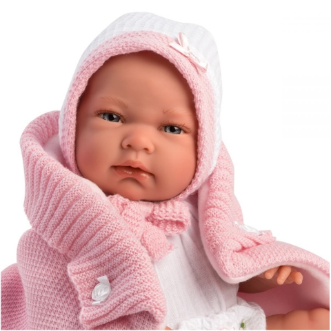 A spanyol Llorens világszerte ismert lélegzetelállítóan szép és élethű babáiról. Ez a gyönyörű Nica lány baba 40cm magas, kezei és lábai mozgathatóak, így ülő és fekvő pozícióban egyaránt el lehet helyezni őt. A baba teste teljes egészében vinylből készül, így a gyerekek még fürdethetik is őt. Egy csodaszép kötött ruhában, sapkában és zokniban érkezik, valamint a szett még egy rózsaszín pokrócot is tartalmaz. A baba szemei nyitott állapotban vannak és a szett egy cumit is tartalmaz, ami a pokrócra is csatolható, valamint Nica szájába adható. Aki minőségi, élethű babát szeretne, annak bátran ajánljuk a Llorens kollekciót.