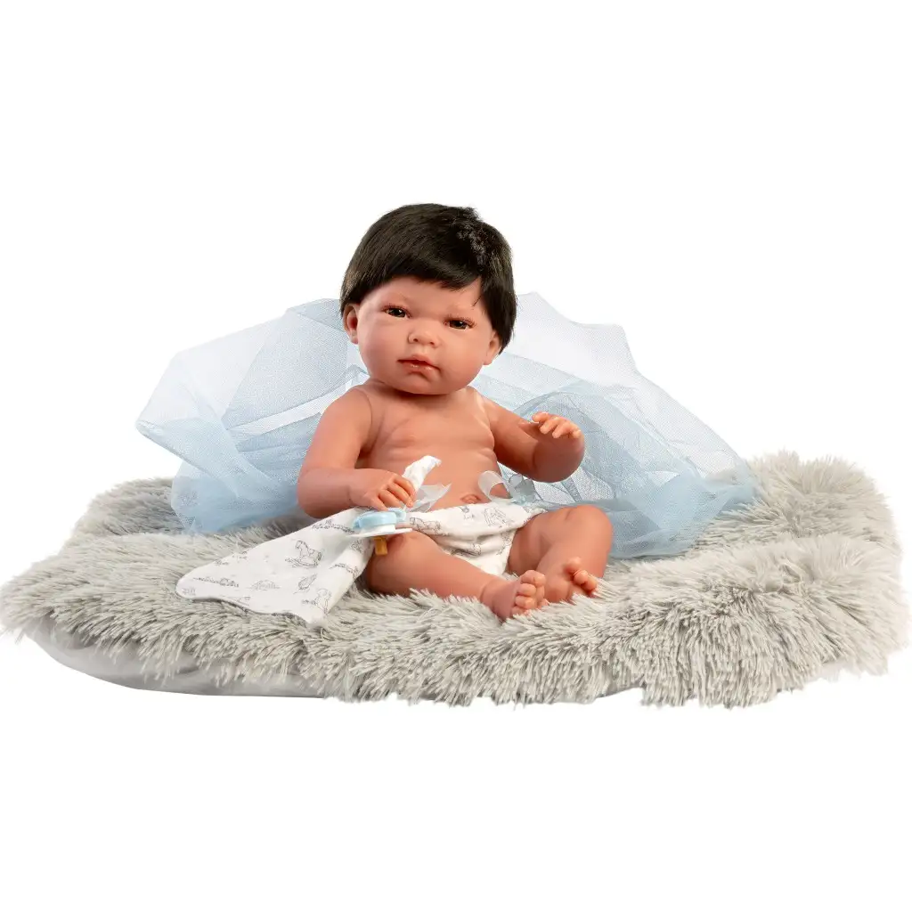 A Llorens Nico baba, aki 40 cm magasságával és szőrös szürke párnájával varázsolja el a gyerekeket! A Nico baba műanyag testének köszönhetően rendkívül tartós, így a gyermeki játék során felmerülő kalandoknak is bátran áll ellen. Az élethű kidolgozás és a részletgazdag kialakítás révén, mint például az aprólékosan megformált kezek és lábak, a Nico baba tökéletesen utánozza egy igazi kisbaba megjelenését. A cumi, ami a babával érkezik, nem csak a valósághű játékot teszi teljessé, hanem megnyugtató tárgy is lehet a baba számára. A szürke párnával együtt Nico tökéletes választás lehet minden gyermek számára, aki egy új barátra vágyik. A Llorens prémium minőségű spanyol babák mindegyike kézzel készített, kiemelkedően részletgazdag kidolgozással bír és gondosan kiválasztott alapanyagok felhasználásával készül, hogy a legmagasabb minőségi követelményeknek is megfeleljen. A baba egy csodaszép díszdobozban érkezik, így gyerekeknek és gyűjtőknek egyaránt tökéletes választás.