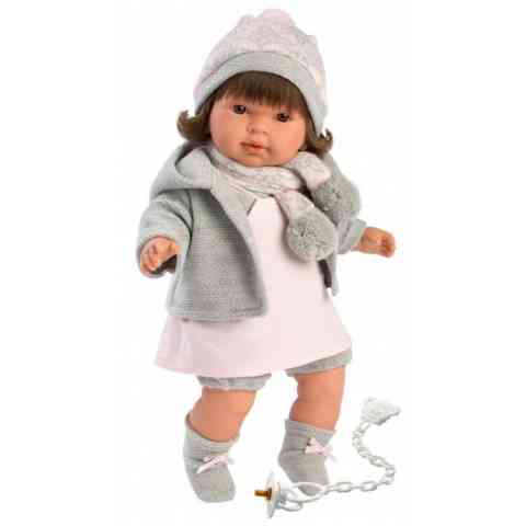Llorens: Pippa 42cm-es baba rózsaszín-szürke ruhában hanggal és cumival