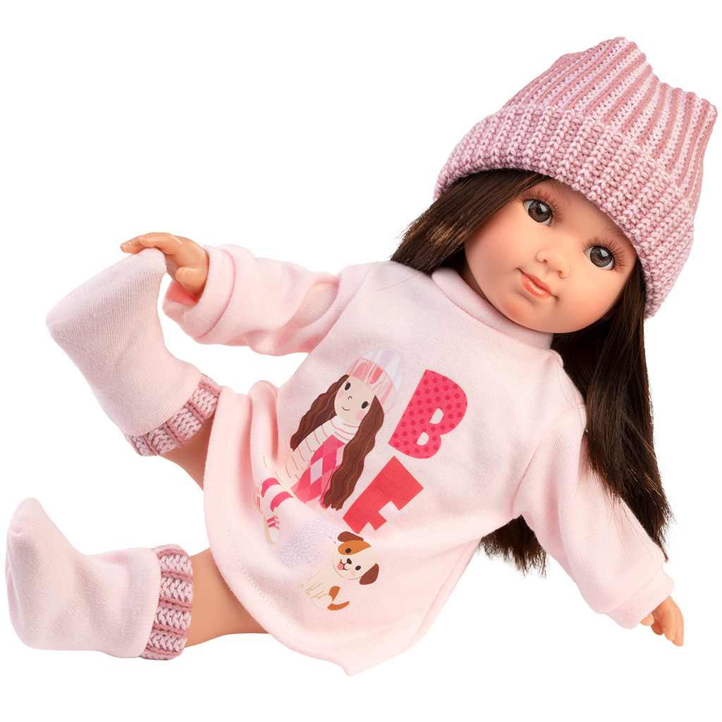 Llorens: Sara 35cm-es baba rózsaszín kötött sapkábanLlorens: Sara 35cm-es baba rózsaszín kötött sapkában