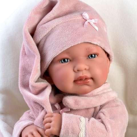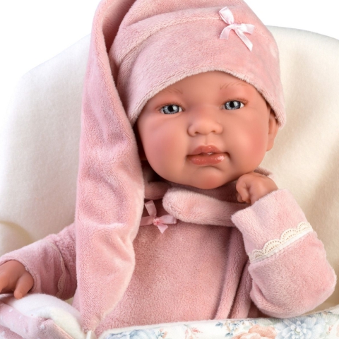 Llorens: Tina 44cm-es síró baba hálósapkában pólyávalLlorens: Tina 44cm-es síró baba hálósapkában pólyával