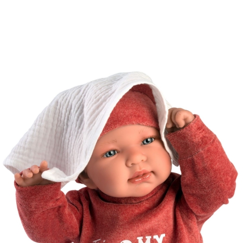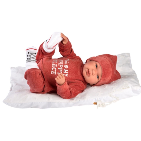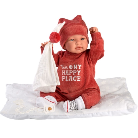 Llorens: Tina 44cm-es síró baba piros ruhábanLlorens: Tina 44cm-es síró baba piros ruhában