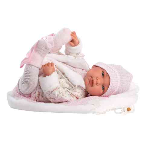 Llorens: Tina újszülött síró baba rózsaszín pokróccal 44cm-es