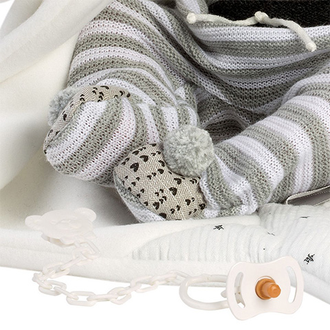Tino egy részletgazdag kidolgozottsággal rendelkező Llorens baba aki csak arra vár, hogy gyermeked szerető gondoskodással törődjön vele a mindennapok során. Tino egy díszdobozban érkezhet gyermeked játékgyűjteményébe amely akár ajándéknak is kiváló választás. A dobozban a játékbabán kívül egy pihe-puha takarót, prémium minőségű, kézzel készített babaruhát és egy cumit is megtalálhatsz. 43cm-es méretéből adódóan kényelmesen elférhet gyermeked akár már meglévő babakocsijában is.