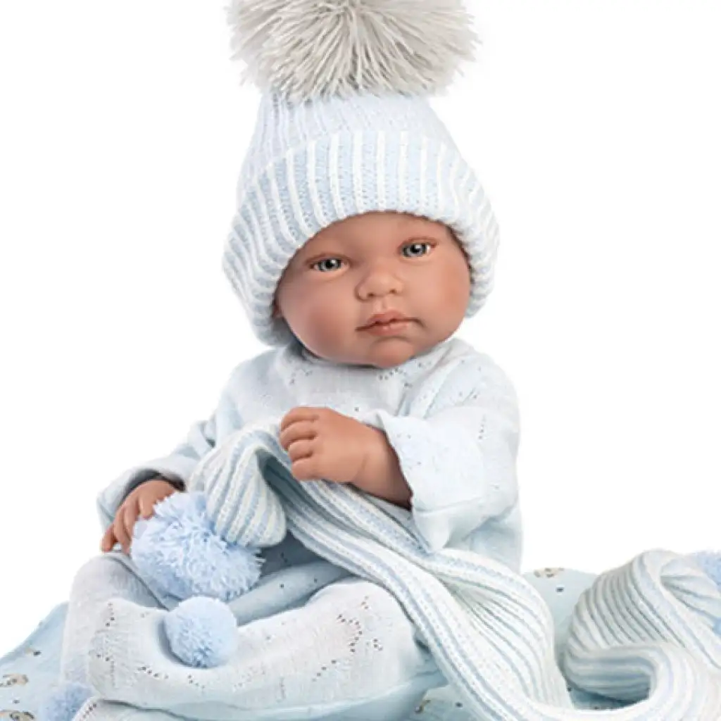 Llorens: Tino 43cm-es újszülött fiú baba kék babapléddel, cumival és 3db különböző ruhávalLlorens: Tino 43cm-es újszülött fiú baba kék babapléddel, cumival és 3db különböző ruhával
