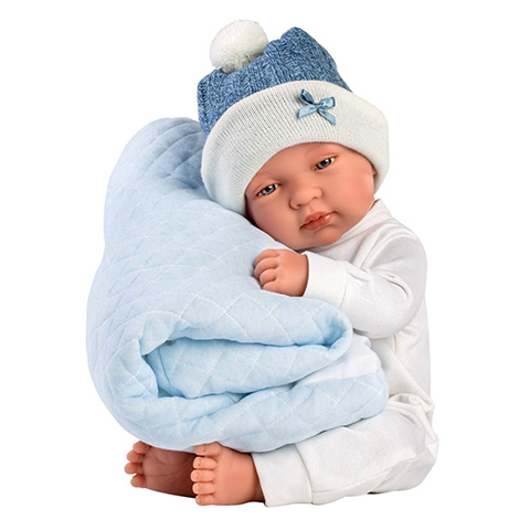 Llorens: Tino 43cm-es újszülött kisfiú baba párnával