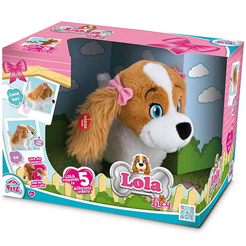 Igazán kedves és hűséges kis társsal gyarapodhat a játék, hiszen Lola kutyád mindig veled tart a játékban és a szórakozásban. A bájos plüss kutyus nem csak külsejével varázsolja el a gyerekeket, hanem interaktív funkciói is szórakoztatják őket. Öt különböző utasítást mondhatsz neki, melyekre ugatással vagy más kifejezésekkel reagál.