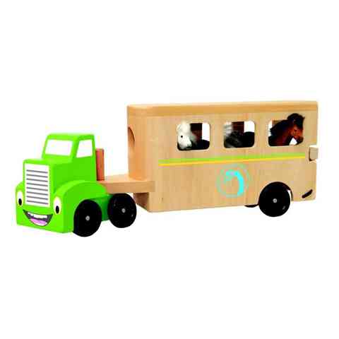 Az egész játék kamion tömör fából készült, mely ezáltal igen masszív játék. A kamion arculata kimondotta a legkisebbeknek kedvez, emellett úgy van megtervezve a játék, hogy az kanyarodni is képes. A kamion nagyságához tökéletesen illik a lovak nagysága, tehát, könnyedén ki és be lehet rakni az állatokat a játék utánfutóba. A lovak kivitelezése igényes, a valódi lovak küllemének megfelelő arányúak.