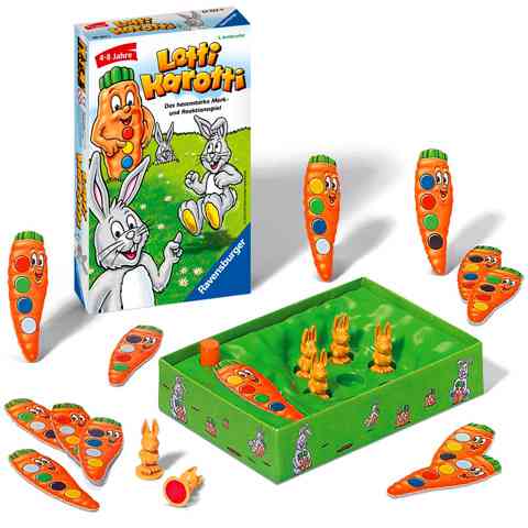 Rendkívül izgalmas játékélmény vár a Lotti Karotti mini társasjátékkal, mellyel két játékot is kipróbálhatsz! A reakcióidőt és a memóriát is fejlesztó társasjátékban a játékosoknak a nyuszi játékbábuk talpán elhelyezett színt kell megjegyezniük, ennek segítségével gyűjthetik be a répa formájú kártyákat, hogy aztán elsőként érjenek fel a zöld domb tetején elhelyezett répa elemhez. Vajon ki lesz a legfürgébb ugrifüles?