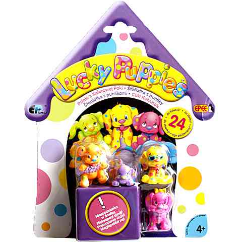 Mindenki szereti ezeket a Lucky Puppies kutyusokat, hiszen kedves mosolyuk és színes megjelenésük azonnal feldobja a játék hangulatát. A ritkább kutyusokat nehezebb lesz beszerezned, de ha teljes a készlet, rendkívül izgalmas játék vár rád és barátaidra. Cserélgesd a Cuki kutyusokat, hogy végül az összeset beszerezhesd gyűjteményedbe!