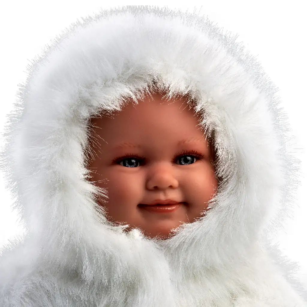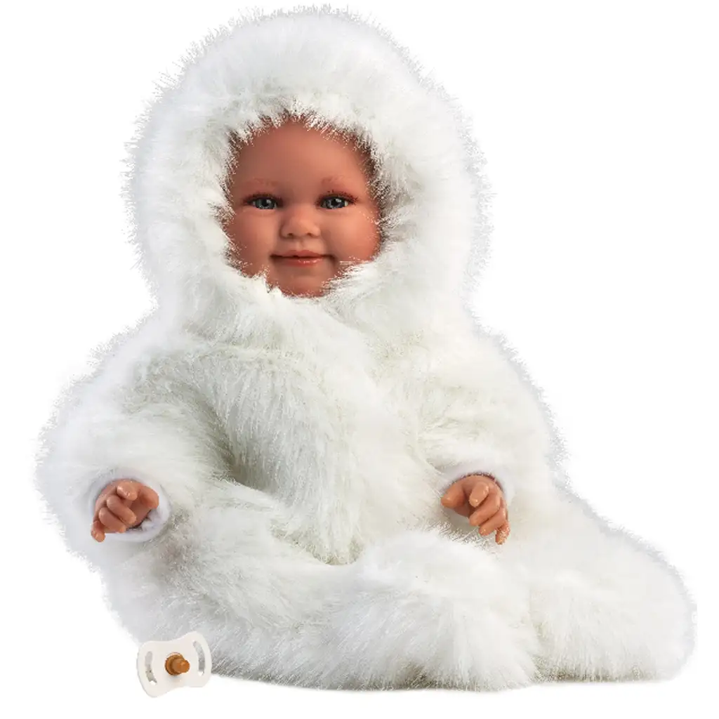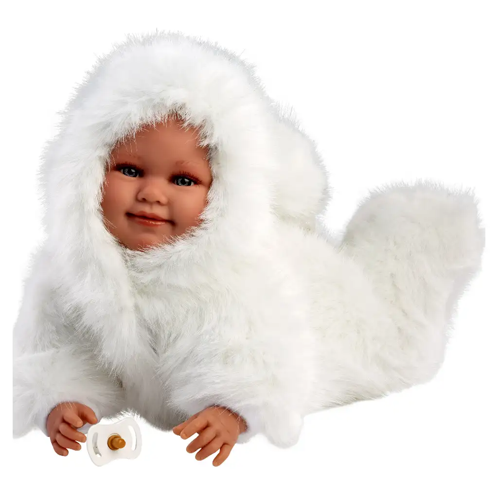Llorens: Luka 45cm-es mosolygós baba cumival fehér bársony bundában