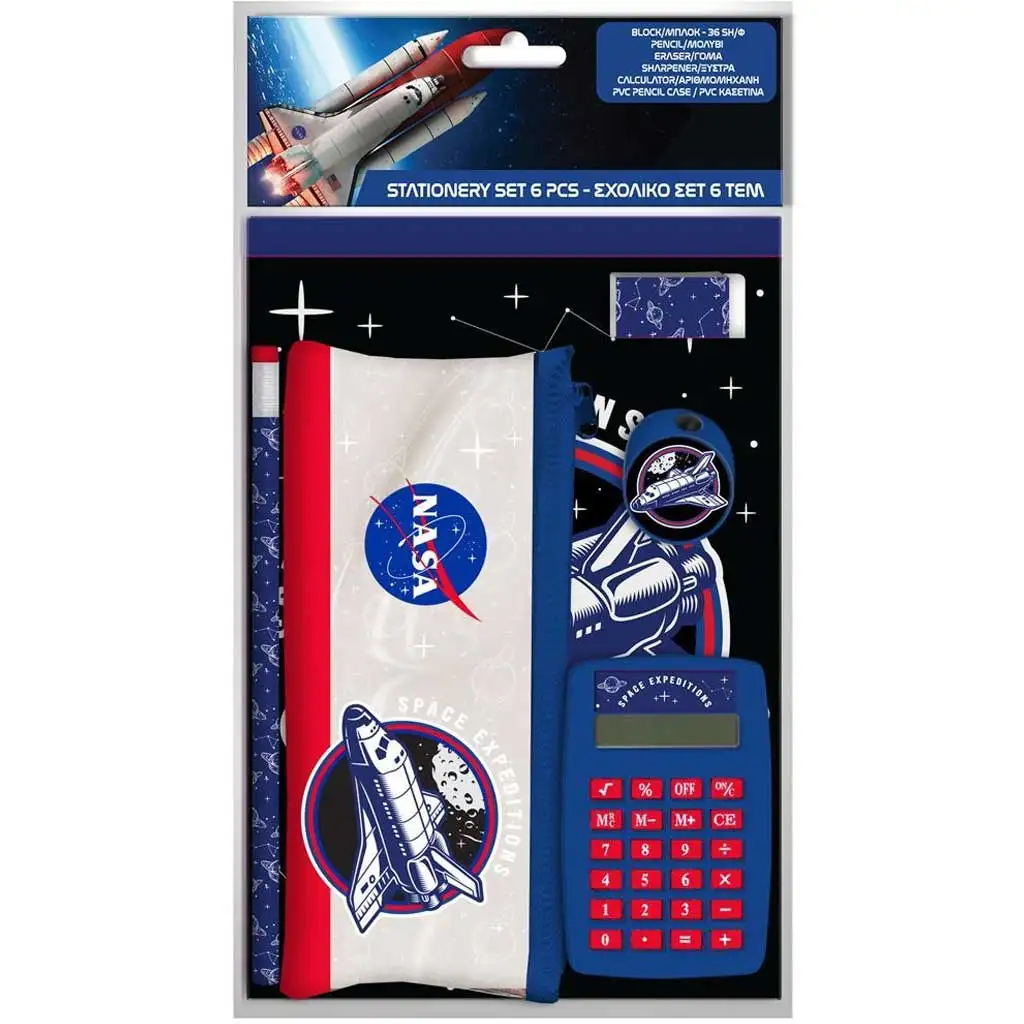 Luna: 6db-os NASA írószer szett tolltartóval, számológéppel és írószerekkelLuna: 6db-os NASA írószer szett tolltartóval, számológéppel és írószerekkel