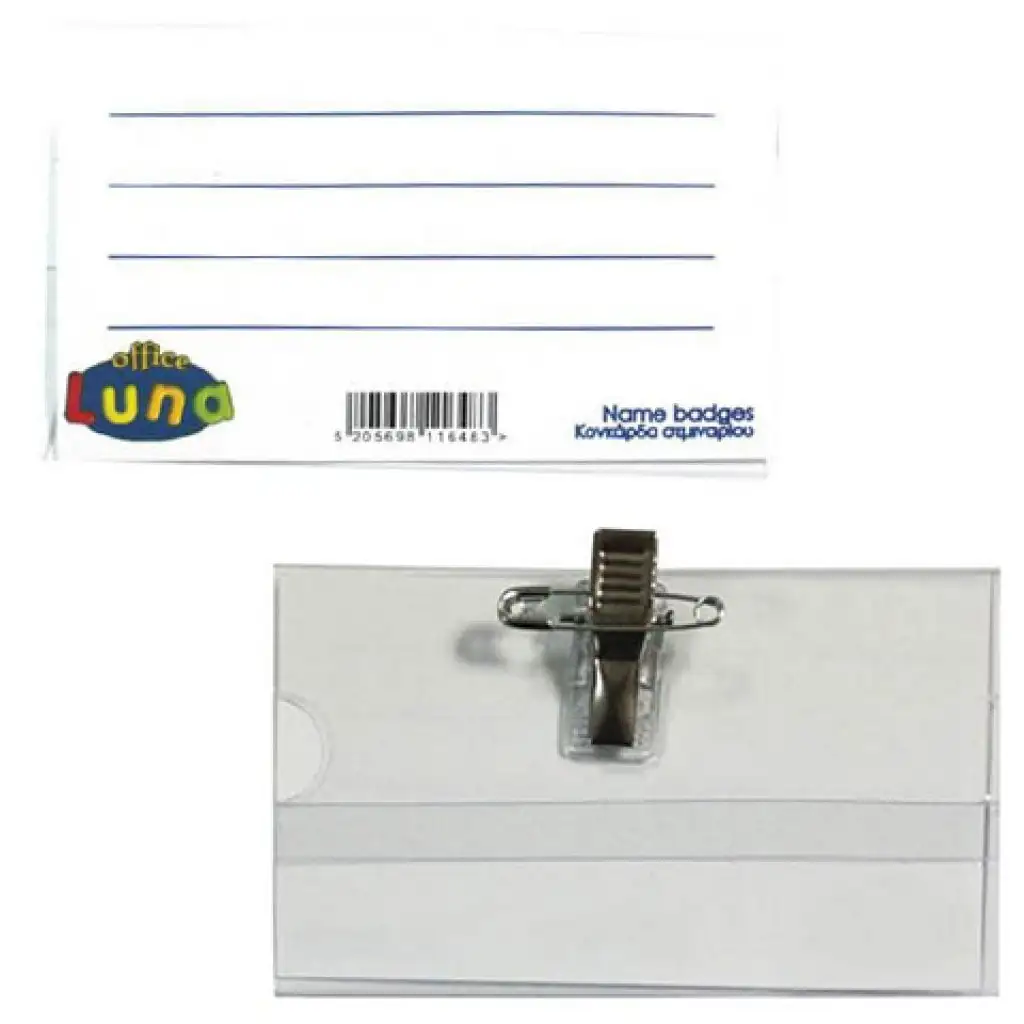 Luna: Csíptetős műanyag kitűző névtáblával 90x55mm