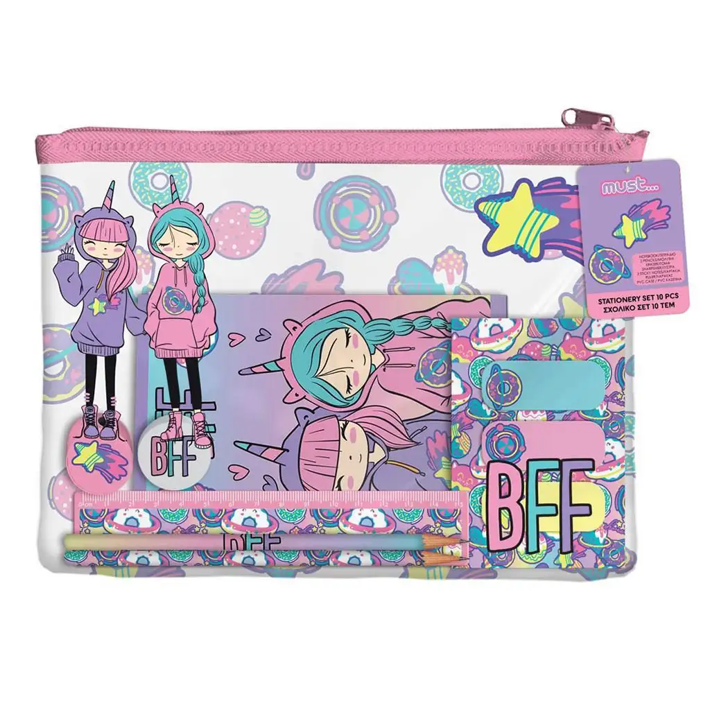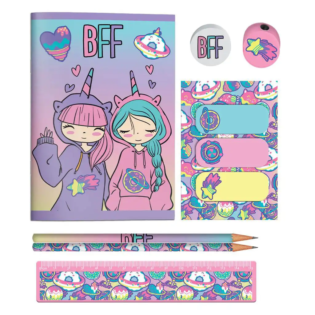 - 10 részes írószer szett színes BFF dizájnnal