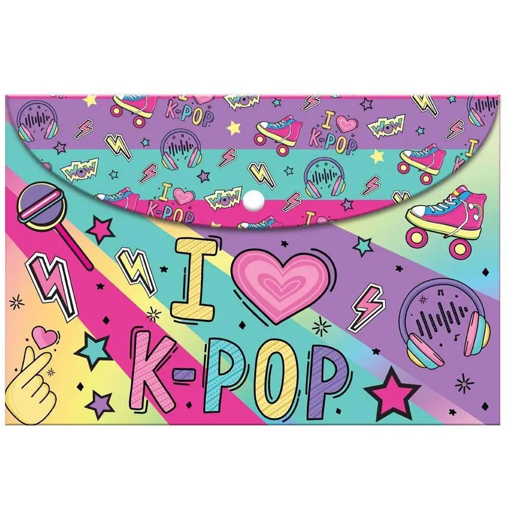 Ez a színes, zeneimádó stílusban készült mappa kiváló ajándék minden fiatalnak, aki imádja a K-POP világát és szeretne egy igazán stílusos mappát a hétköznapokhoz.