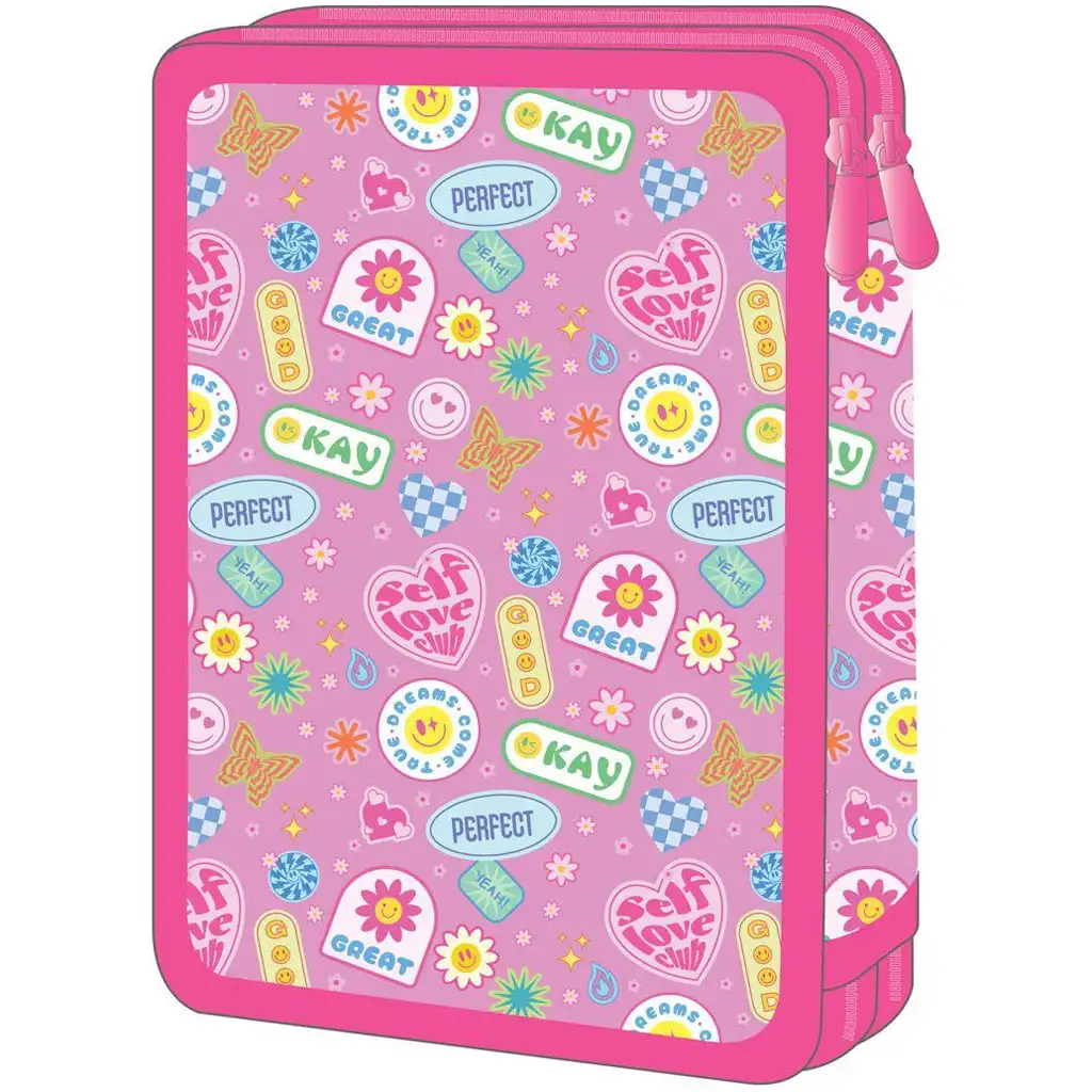 A Must Team Good Vibes töltött kétszintes tolltartó tökéletes választás, ha szeretnéd, hogy gyermeked mindig rendezett és stílusos legyen az iskolában. A holografikus hatású borító és a színes ikonok – mint a mosolygós napocska, szívecske, pillangó, láng és smiley – garantáltan jókedvre derítenek minden reggelen. A dizájn modern, friss és telis-tele van pozitív energiával – pont, amire egy sulis naphoz szükség van.