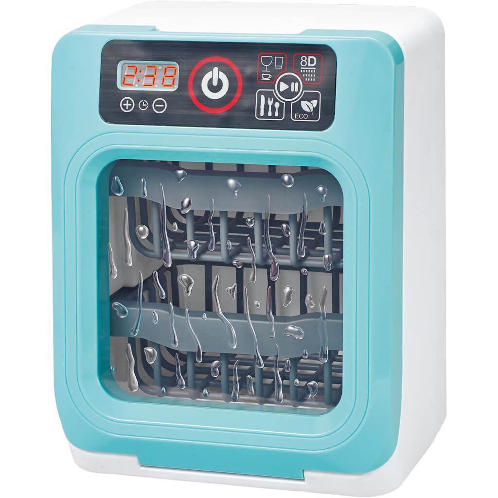 A készülék tetején digitális kijelző, gombok és ikonok láthatók, amelyek segítségével a kicsik elindíthatják a „mosási programot”. A belső tér áttetsző ajtóval van ellátva, így a gyerekek játék közben is figyelhetik, mi történik „mosogatás” közben – a vízcseppeket imitáló műanyag elemek pedig még látványosabbá teszik a használatot.