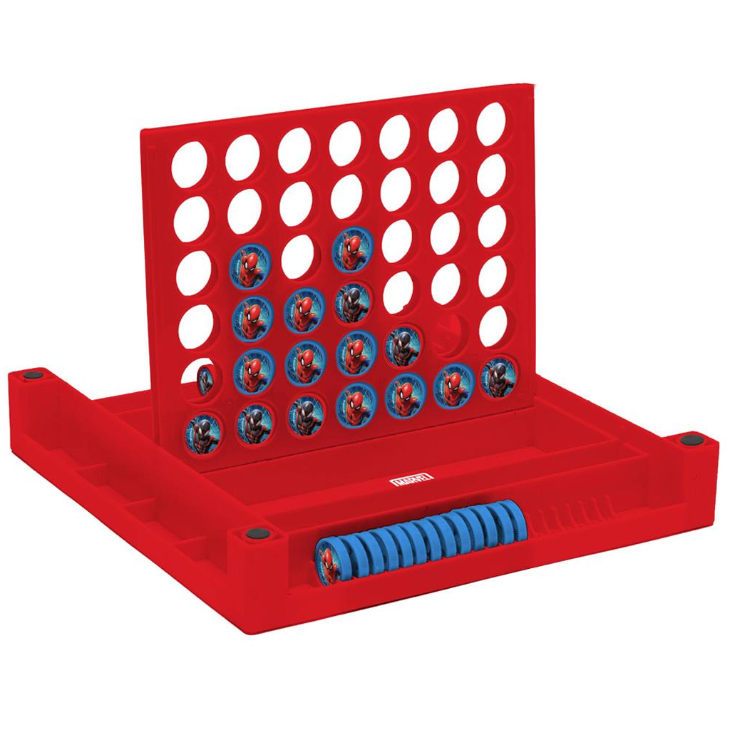 A 29 × 29 × 6 cm-es kompakt játékdoboz tartalmaz minden szükséges elemet: a 4-et egy sorba játékhoz tartozó állványt és korongokat (Pókemberes mintákkal), illetve egy színes, szuperhősökkel teli játéktáblát a Kígyók és létrák játékhoz. A két játék más-más készségeket fejleszt: az egyikben a stratégiai gondolkodás kerül előtérbe, a másikban a szerencse és a játékos versengés. Így változatos élményt kínál, miközben a gyerekek szórakozva tanulnak és fejlődnek.
