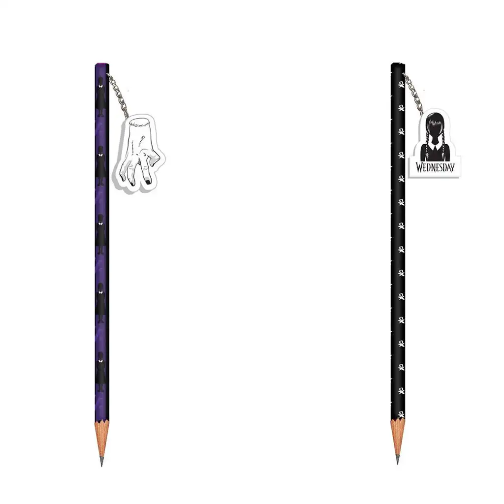 Mindkét verzió végén radír található, hogy az apró hibák könnyen javíthatók legyenek. A láncon lógó karakterfigura nemcsak dísz, hanem szuper játékos részlet is, amit a gyerekek imádni fognak. Ez a ceruza tökéletes választás a mindennapi iskolai használatra, de remek ajándék is lehet bármelyik Wednesday-rajongónak!