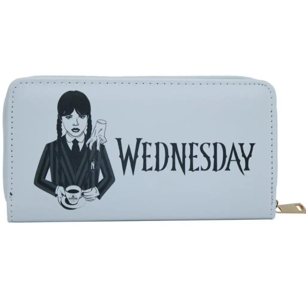Hozd el a sötét eleganciát mindennapjaidba ezzel a stílusos Wednesday pénztárcával! Ez a különleges kiegészítő tökéletes választás minden Wednesday Addams rajongónak, akik szeretnék magukkal vinni kedvenc karakterük misztikus hangulatát. A pénztárca előlapján Wednesday ikonikus figurája látható, fekete-fehér grafikával és a jellegzetes "Wednesday" felirattal, amely azonnal felismerhetővé teszi ezt a különleges darabot.