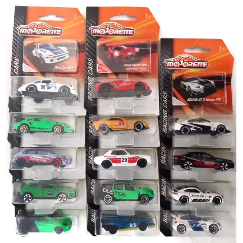A Majorette racing sorozatában tizennyolc különféle sportkocsi található így a versenypályádat a legváltozatosabb járgányokkal tudod tesztelni. Az autók között olyan járgányokat találsz mint a rally versenyek sztárjának számító Subaru WRX STI, Ford Fiesta vagy a VW Polo WRC. De az izomautókat sem kell nélülöznöd köszönhetően a Ford Mustangnak vagy a Dodge Challenger SRT Hellcatnek. A leggyorsabbakat pedig a Lamborghini Gallardo képviseli. Minden kisautó az eredeti járgány pontos és aprólékos másolata, ami nagy játékélményt nyújt a gyerekeknek, ráadásul mindegyikhez egy gyűjtői lap is jár.
