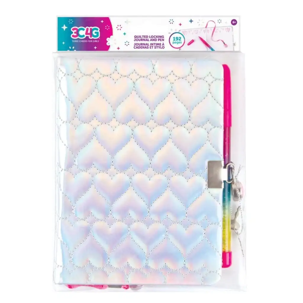A Make It Real 3C4G Zárható steppelt napló tollal tökéletes választás minden kis író és naplóvezető számára, akik szeretnék titkaikat biztonságban tudni. Ez a szív mintás, fényes steppelt borítóval ellátott napló stílusos megjelenést kölcsönöz, miközben a zár segítségével gondosan megőrizheted a benne leírtakat. A napló 192 oldalból áll, így rengeteg helyet biztosít gondolataid, rajzaid vagy emlékeid leírásához. A csomag egy színes, csillámos tollat is tartalmaz, hogy az írás még szórakoztatóbb legyen.