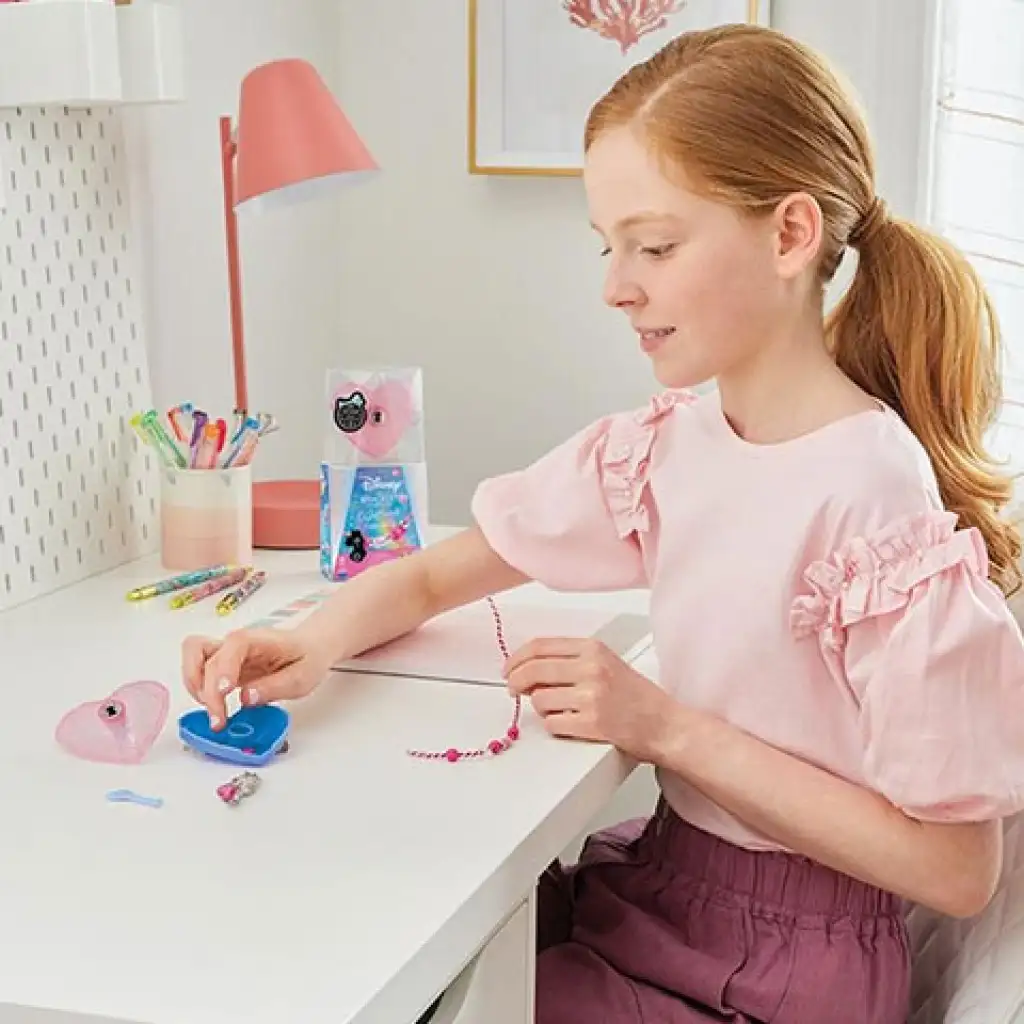 A Disney mesepalotájának csillogása minden rajzfilm kezdetén megbabonázza a gyerekeket, és a Make It Real Disney kristály titok meglepetés karkötő szettnek köszönhetően ezt a különös ragyogást most bárhova magaddal viheted. A készletben a legbájosabb Disney meglepetés ékszerekkel találkozhatsz. A Make it Real Disney kristály titkok csináld magad karkötő készítő szett egy különleges meglepetés, ami már a formájában egy különleges ajándék, ráadásul ez a kompakt ékszerkészítő szett egy misztikus szívecske formájú tokban érkezik, melyet a csomagolásban lévő kulcs tár fel előtted. A Disney kristály titok készlet összesen nyolc különféle változat közül rejt egyet meglepetésszerűen, köztük van Olaf, Stitch és Raya egyik sárkánya is.