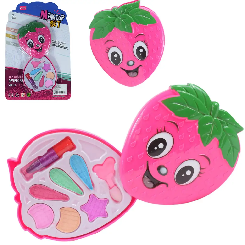 Most minden kislánynak lehetősége nyílik saját sminkkészletének birtoklására, amelyet bárhova magával vihet. Ez a kicsi, gyönyörűen kidolgozott készlet egy édes eper formájú tárolóba került elhelyezésre, mely önmagában is varázslatot csempész a gyermekek szívébe. Azonban a külső szépsége mellett a készlet valódi kincsekkel van megtöltve: a legszemet gyönyörködtetőbb és legvidámabb színek találhatóak benne, melyek meghökkentően boldoggá teszik a lányokat a sminkelés során. Továbbá, a készlet egy ragyogó árnyalatú rúzzsal is gazdagították. Miután befejezted a sminkelést, mosolyod épp olyan ragyogó lesz, mint az eper tároló maga, és csodálatosan tükrözi a boldogságot és kreativitást, amit a sminkelés varázsa nyújt.