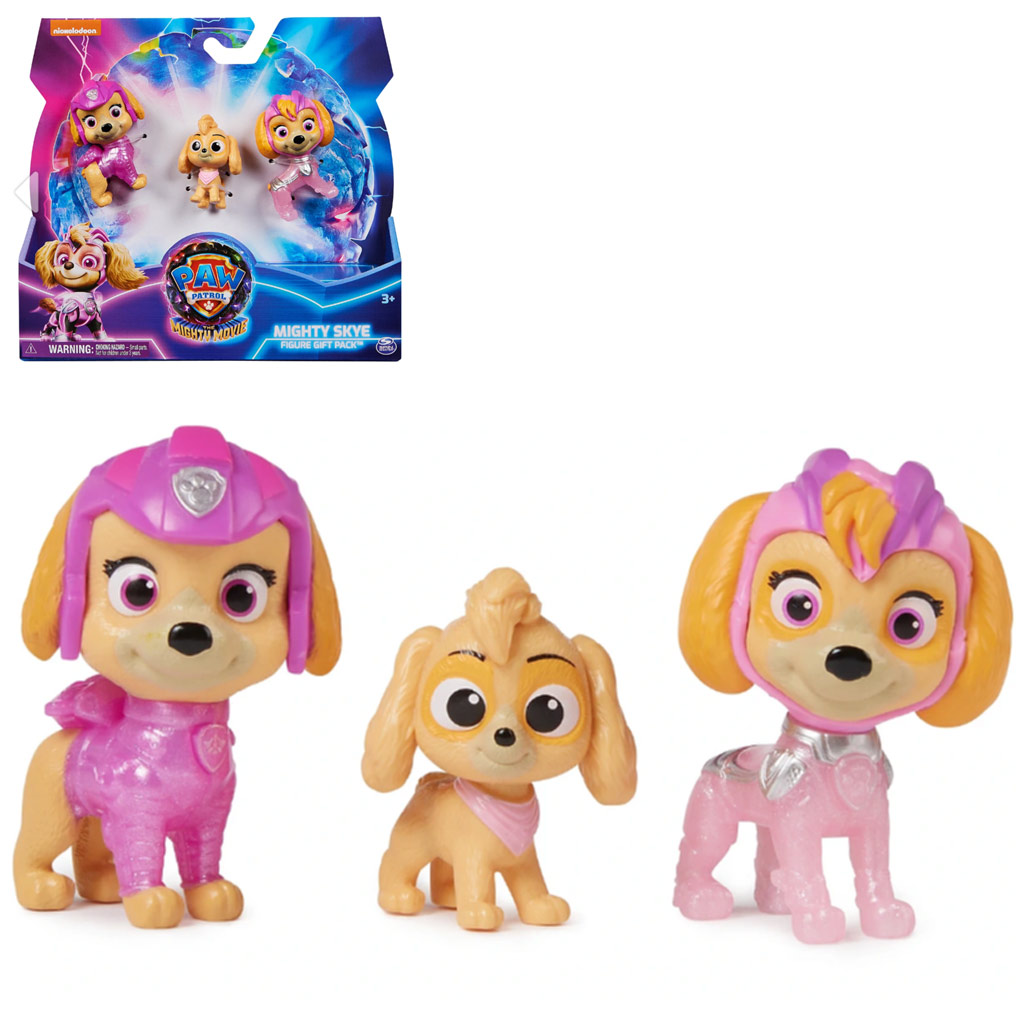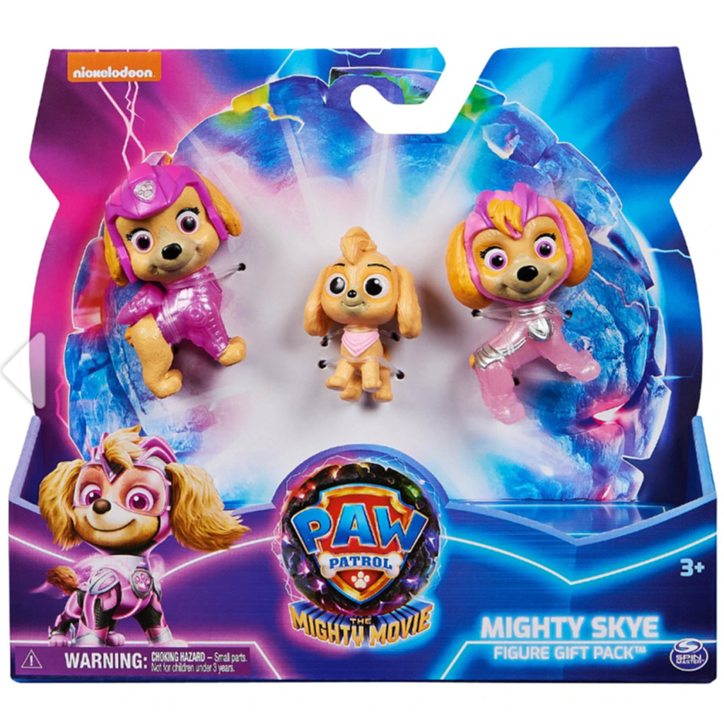 Szerezz be három generációt Skye figurákból - az eredeti PAW Patrol film Skye-ját, a The Mighty Movie Skye-ját, valamint egy rendkívül aranyos Baby Skye figurát, amit sehol máshol nem találsz! Minden Skye figura egy igazi PAW Patrol közlegény ruhájában pompázik, nagy szemekkel és hűen visszaadott bundadíszítéssel, így mindegyik élethűen hasonlít a PAW Patrol filmekben látottakra.