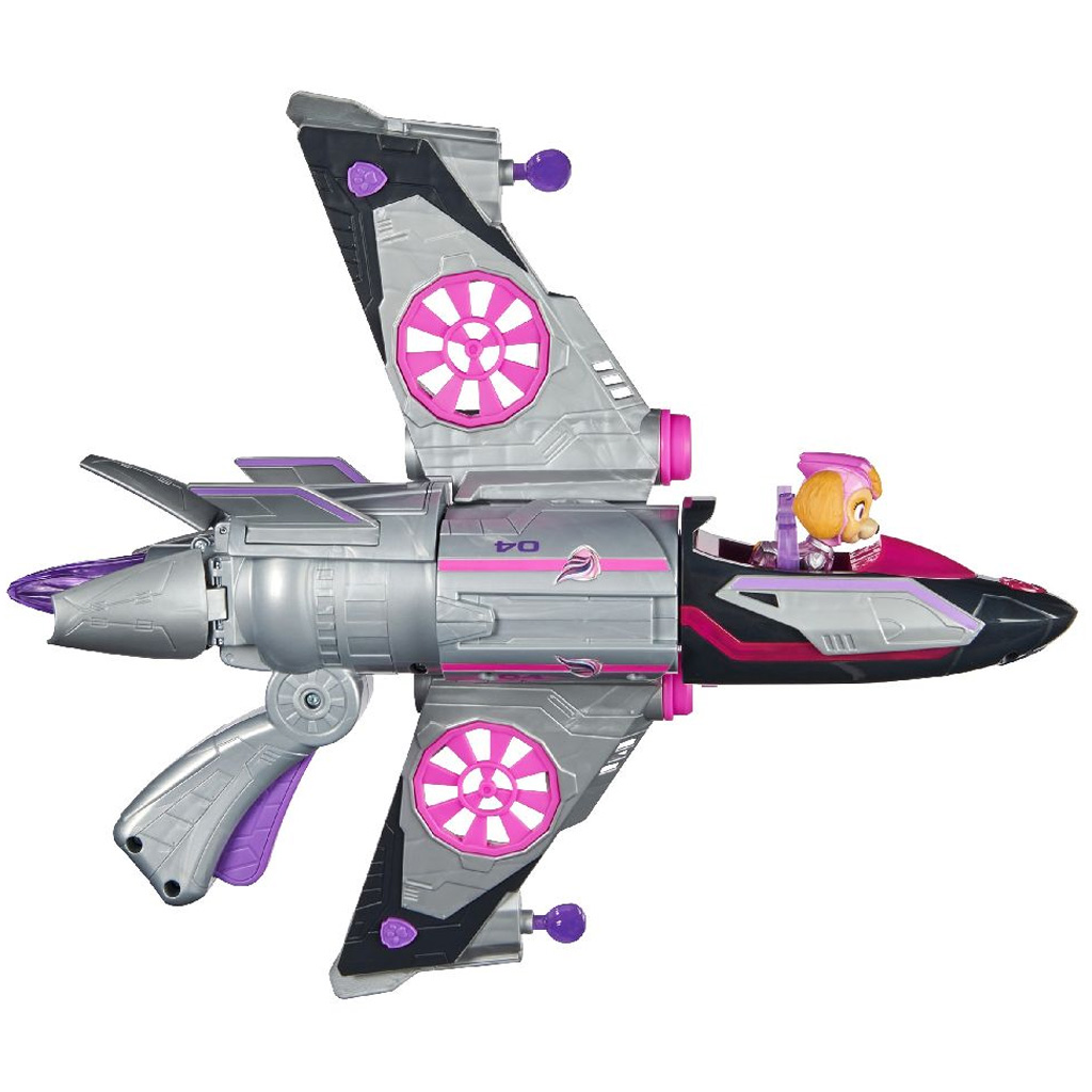 Csatlakozz Skye-hoz és a PAW Patrol The Mighty Movie repülőgépéhez izgalmas mentőakciókhoz közvetlenül a nagyvászonról! Ez a PAW Patrol játékrepülőgép több mint 38 cm hosszú és több mint 35 cm széles, lenyűgöző tervezéssel, izgalmas járműaktivációval, két lövővel projektilhoz, valamint izgalmas hanghatásokkal és zenével, szinkronizált villogó fényekkel, amelyeket a filmben látsz és hallasz. Ez a luxus Mighty Pups repülőgépe Skye-től fantasztikus ajándék lenne azoknak a gyerekeknek, akik rajonganak a PAW Patrol filmért (elemekkel együtt).