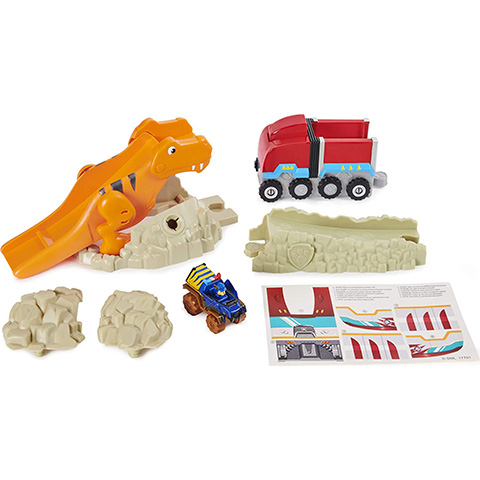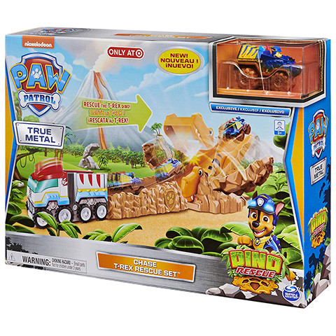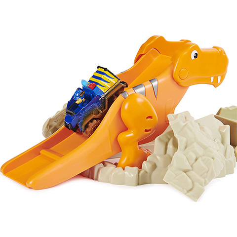 A Mancs őrjárat kutyusaira mindig lehet számítani, ha a Kaland-öbölben valakinek segítségre van szüksége legyen az ember vagy éppen állat. Azonban most egy igazán különleges kalandban csatlakozhatnak a gyerekek Chase-hez a kis rendős kutyához, hiszen ez alkalommal egy hatalmas T-Rex is részese a történetnek. A készletben minden adott a jó szórakozáshoz, hiszen egy rövid pálya építható össze amin Chase végig tud száguldani a járgányával. Azonban a pálya része a félelmetes T-Rex is, bár úgy, hogy az ő hátán is végig gurulhat a mese főhőse, így már közel sem olyan rémisztő.