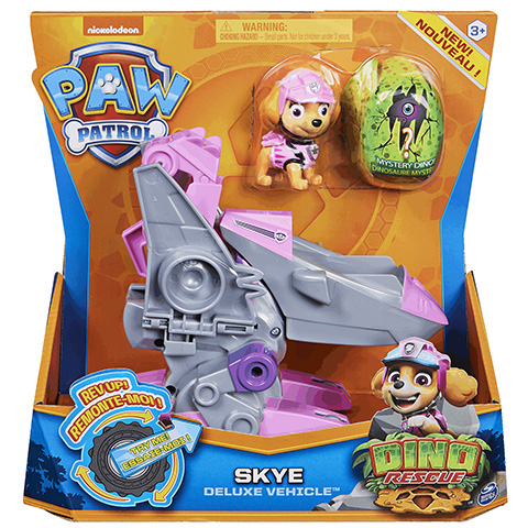 A Mancs őrjáratnak már a Kaland-öbölben is bőven akadt dolga, de lássuk be, hogy egy dinó mentő akció mindennél izgalmasabban hangzik, és a gyerekek most csatlakozhatnak ehhez a kalandhoz Skye és egy vagány repülő társaságában. A részletgazdagon kidolgozott járgány épp olyan mint a mesében, ráadásul lendkerekes meghajtással teszi még izgalmasabbá a játékot a gyerekek számára. Természetesen a járgányba kényelmesen be lehet ültetni a kutya figurát, így a gyerekek felidézhetik a mese legjobb részeit vagy akár új történeteket találhatnak ki.