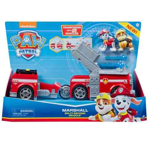 Az minden gyerek tudja, hogy Mancs őrjárat kutyusai a legvagányabb járgányokkal és felszerelésekkel rendelkeznek. Ebben a csomagban természetesen egy ilyen szuper kocsi található, amely Marshall, a kicsit ügyetlen, ám annál bátrabb tűzoltó dalmata kölyök járgánya. A kocsi különlegessége, hogy egyetlen mozdulattal ketté lehet választani, így Rubble egy háromkerekű motorral száguldozhat, miközben Marshall egy rugós kilövő segítségével igyekezhet eloltani a lángokat. Amint mindeni végzett a dolgával, a két járgányt újra össze lehet kapcsolni, hogy egy hagyományos tűzoltó legyen belőle.