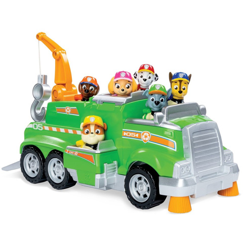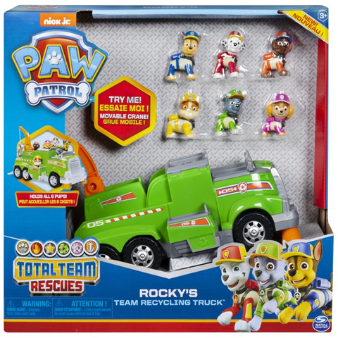Ezzel a vagány járgánnyal a gyerekek felidézhetik a Mancs őrjárat mesefilm legjobb részeit, hiszen a hatalmas újrahasznosító járgány mellett megtalálható Rubble, Ghase, Marshall, Rocky, Zuma és Skye. A kutyusok Kaland-öbölben nem csak a bajba jutott embereken és állatokon segítenek, hanem szem előtt tartják a tisztaságot és a környezetvédelmet is, amiben a legnagyobb segítséget Rocky elhivatottsága és különleges járgánya jelenti. Ezzel a nagyszerű készlettel a kicsik megannyi új kalandot találhatnak ki a kedvenceik számára.