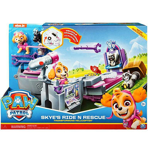 Új kalandok várnak a Mancs Őrjárat rajongóira, amelyekben ezúttal Skye lesz a társuk! A különleges helikopterrel a magasba emelkedhetnek Skye irányításával, azonban a földön landolva indul csak az igazi akció! A szétnyitható helikopter ugyanis egy szuper állomásként is használható, ahol Skye kis barátai is társak lesznek a játékban. Egy borz és egy mosómedve lehet a kutyus játszótársa, azonban kacsák is feltűnnek a szétnyitott játéktérben.