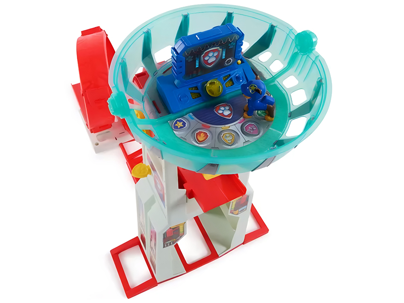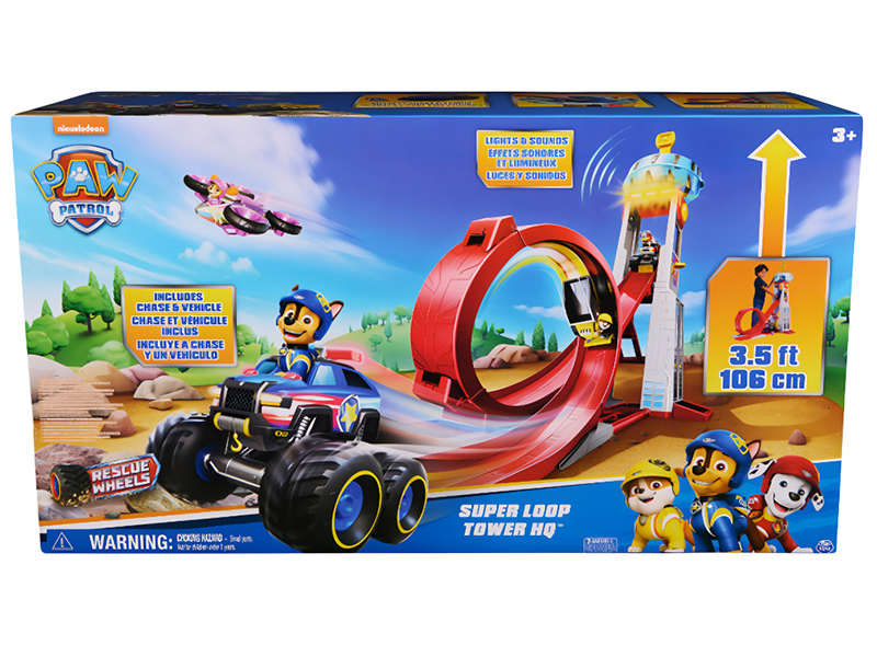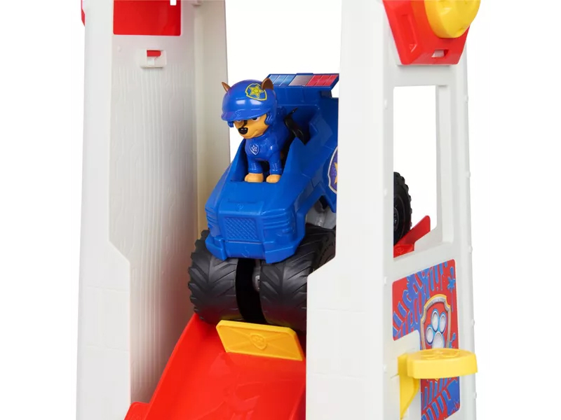 Ez az óriás pályaszett különösen figyelemfelkeltő a benne található 106 cm magas toronnyal, amely központi szerepet játszik a mentőakciók során. Chase terepjárójával bejárhatják a pálya különböző részeit, és az egyik legizgalmasabb funkció a hatalmas hurkon való átkelés, amely garantálja az adrenalinlöketet! A járművek a toronyból indulnak, ahol egy látványos lejtő segít a sebesség elérésében, majd a kocsi nagy lendülettel hajt keresztül a hurokon. A játék fény- és hangeffektekkel is rendelkezik, így még realisztikusabb élményt nyújt a kicsiknek, akik újra és újra átélhetik a Mancs Őrjárat epizódjainak izgalmait.