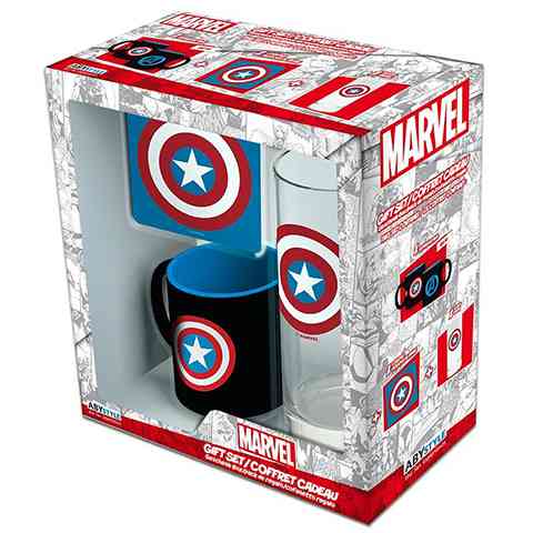 Egy remekül összeválogatott ajándékcsomaggal kedveskedhetünk a képregény rajongó barátaink számára. Amerika kapitány a Marvel képregények egyik legnépszerűbb karaktere, így ez az ajándékcsomag biztos, hogy elnyeri mindenkinek a tetszését. A csomagban egy fekete minibögre is helyet kapott, amibe egy deci ital tölthető, így ideális választás kávézáshoz. A készletben egy üvegpohár is található, amin természetesen a kapitány pajzsát idéző embléma látható. Végül de nem utolsó sorban egy poháralátétet is találni a csomagban, így nem lesz tele foltokkal az asztalok teteje.