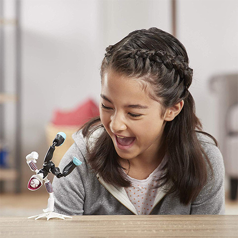 Ghost-Spider egy fiatal nő Gwendolyne Maxine Stacy aki egy párhuzamos univerzumban Pókemberhez hasonlóan egy rádióaktív pókcsípés következtében tesz szert a szuper erejére. Természetesen ő is képes falon mászni, hálót lőni és elképesztően ügyes, így a gyerekeknek öröm lesz eljátszani a kalandjait ezzel a vagány figurával. A Marvel Bend and Flex tizenöt centiméteres figurái a képregények alapján készültek aprólékos kidolgozással és festéssel, azonban a különleges eljárásnak köszönhetően a figurák rendkívül könnyen és sok ponton mozgathatók, így szinte bármilyen harci pózba be lehet őket állítani.