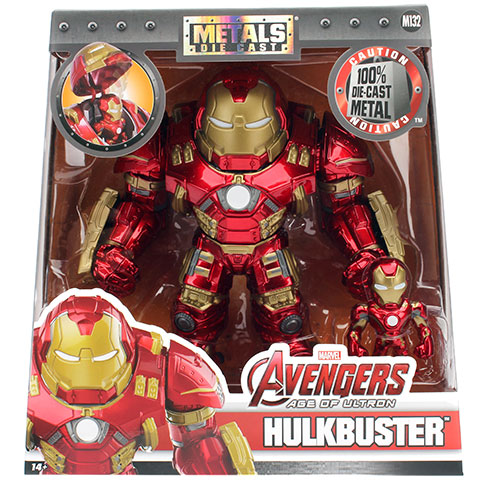 Hulkbuster valójában nem is egy önálló karakter a Marvel univerzumban, hanem egy elképesztően megerősített páncél, amit Vasember arra tervezett, hogy megfékezze vele Hulk tombolását, ha már nincs más mód. AZ Ultron kora című Bosszúálló filmben láthattuk is, működés közben, de még ez a hatalmas monstrum is alig bírt Hulk hihetetlen erejével. A csomagban nem csak a hatalmas Hulkbuster páncél, hanem egy hat centiméteres Vasember figura is található. A Metalfigs figurák rendkívül részletgazdag kidolgozást kaptak, nagyjából tízenhat centiméter magasak, és teljes egészében fémből készültek így akár a gyűjtők számára is izgalmas és szó szerint súlyos ajándéknak számítanak.
