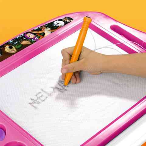 Mása és a medve rajzfilmsorozat egy kislányról és az ő különleges medve barátjáról szól. Az ő meséjük inspirálta ezt a mágikus rajztáblát, amivel ezernyi érdekes dolgot tudsz csinálni. Írhatsz rá, vagy a mágneses nyomdák segítségével temérdek kreatív képet készíthetsz, és egytlen szempillantás alatt el is lehet tüntetni az egész alkotást. Rajzold le Mása és a medve legérdekesebb kalandjait, vagy gyakorold az írást és a számolást, mert egy ilyen varázslatos rajztábla segítségével a tanulás is sokkal érdekesebb.
