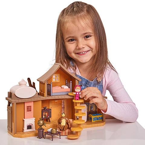 Mása az öt éves kislány egy igen különleges baráttal bír, hiszen egy hatalmas barnamedve társaságában szokott különleges kalandokba keveredni. Nem csak együtt indulnak kalandokra, hanem Mása sok esetben ellátogat a medve házában is, ami egy mutatós és kényelmes házikó az erdő közepén. A ház két szintes, és minden megtalálható ami a kényelmet szolgálja, a kandallóval ellátott nappali, a konyha a megrakott hűtővel és persze az emeleti kis kuckó, ahol egy kényelmes ágy is helyet kapott. A házikó és a két jól ismert mesefigura mellett megannyi kiegészítő is a csomag része.