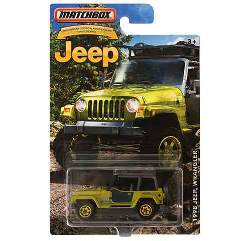 A Jeep 1986-ban újragondolta a világháborúban szolgálatot teljesítő Willys terepjárót, és a legendás előd vonásait megtartva egy új autót alkotott. Az új autó olyan jól sikerült, hogy immár harminc éve hatalmas népszerűségnek örvend. természetesen az újabb modellek már kényelmes hosszútávú utazást tesznek lehetővé, de a kiváló terepjáró tulajdonság mind a mai napig jellemző rá. A Matchbox kisautók már hosszú évtizedek óta jelentek nagyszerű szórakozást a gyerekek számára, azonban a gyűjtők is szeretettel vásárolják a részletgazdagon kidolgozott 1/64 méretarányú autókat.