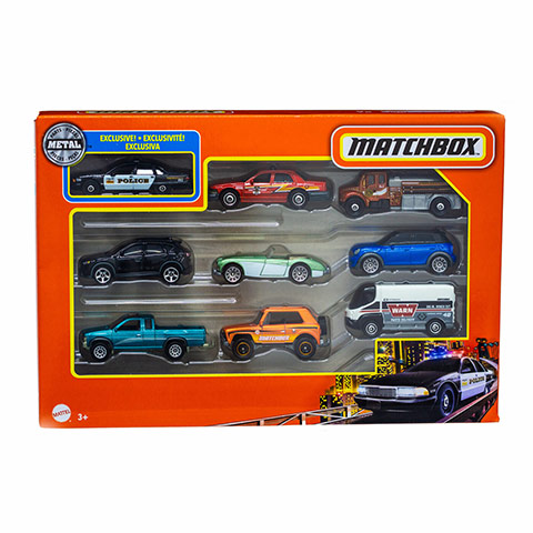 A Matchbox egyedi és kiváló minőségű kisautókat gyárt a gyerekek számára játszásra de ugyanakkor a gyűjtők is kiegészíthetik kollekciójukat ezekkel az új járművekkel. Ebben a szettben találkozol rendőr autókkal, új modellekkel és régi kialakítású kocsikkal is egyaránt. Ezek a rendkívül részletgazdagon kidolgozott és tamponnyomásos festési eljárással dekoráltak. Minden egyes kisautó a valódi modell alapján készül, méretaránya 1/64, mely megközelítőleg 6-8 cm-es hosszat jelent. A kocsi anyaga fém és műanyag.