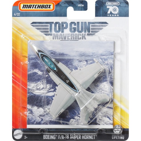 Az F/A-18 Super Hornet egy negyedik generációs többcélú vadászrepülő és vadászbombázó, melyet a Top Gun nagy sikerű Maverick című második részében is láthatunk, mint a főszereplő repülőgépét. A Matchbox repülőgép- és helikopter modellek részletgazdag kidolgozásuknak és tamponnyomásos festési eljárásuknak köszönhetően tökéletes másai a valódi légi járműveknek. A modellek fémből és műanyagból készülnek, akárcsak a kisautó, melyeket már mindenki jól ismer, továbbá a méretarányuk is kompatibilis a kocsikéval. A csomagban most egy különleges kihajtható kartonkártya is található, melyet játszószőnyegként vagy háttérként használhatunk majd a kibontás után.