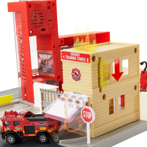 Egy igazán lenyűgöző Tűzoltóságot használhatnak a kicsik ezentúl a Matchbox játék során, melynek mozgatható elemeivel lesz igazán élvezetes a játék! A Matchbox Tűzoltóság nagy szett nem csak fénnyel és hanggal, de emelhető garázskapukkal és sorompóval is rendelkezik, valamint az állomás melletti gyakorlóépület előbukkanó lánynyelvekkel is bír. A szett része a szuper Matchbox Tűzoltóautó, melynek használatával gyorsan elolthatják a gyerekek a lángokat!
