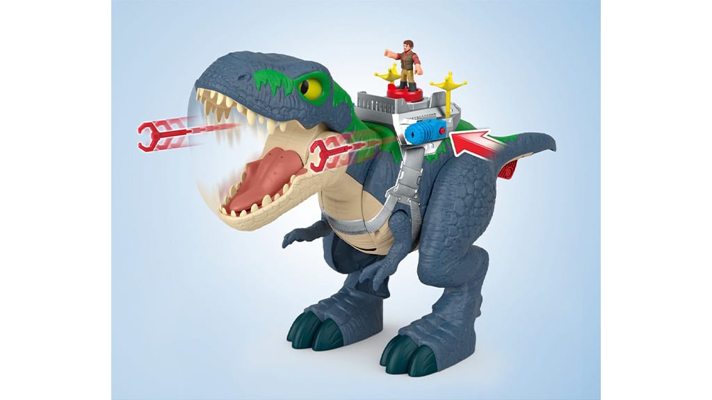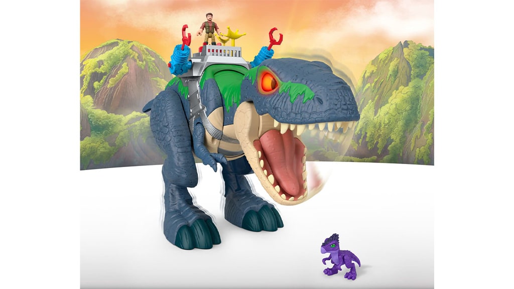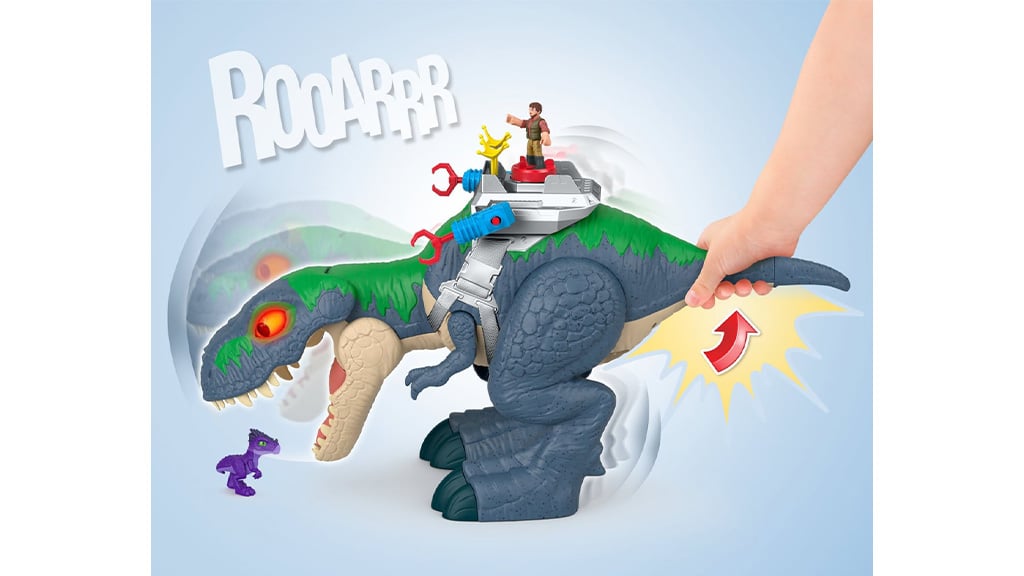 gyerekek most dínós kalandokba repülhetnek bele egy akciódús dinoszaurusz játékkal! A Fisher-Price Imaginext Jurassic World Újjászületés Ultimate Action Chomp T. rex hatalmas szórakozást visz a gyerekszobába, hiszen 46 cm magas és 76 cm hosszú. A gyerekek teljesen elmerülhetnek a fantáziadús játékban, miközben ez az óriási játék üvölt, morajlik és mozog. A T. rex egy beépített kilövő csomaggal is rendelkezik, amely még izgalmasabbá teszi a játékot, és a csomag két 7,5 cm-es figurát is tartalmaz: egy embert és egy dinoszauruszt. Ez a játék fejleszti a képzelőerőtösztönzi a kreatív történetmesélést, és órákon át leköti a gyerekeket!